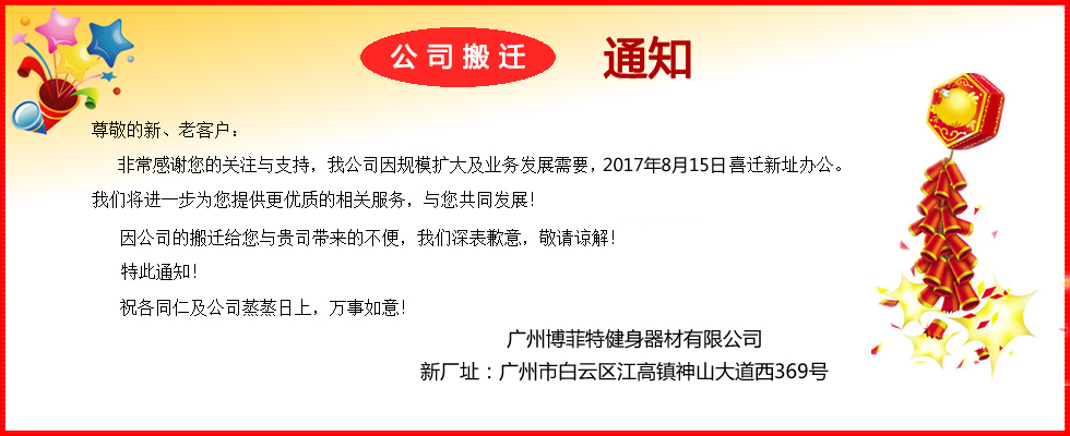 广州桃子视频官网版在线播放健身器材有限公司搬迁通知