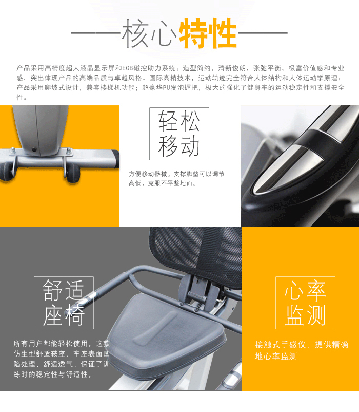 | 心率监控 | 手握心率传感器位于固定把手上,可提高准确度,易于所有体型的锻炼者使用。 |